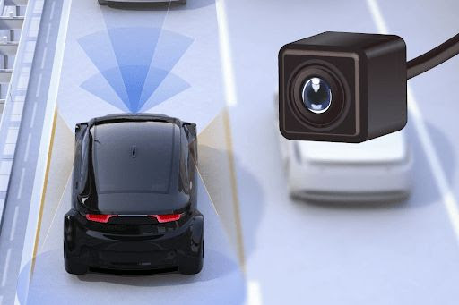 Application areas include view and sensing camera modules, drive recorders, driver-monitoring systems, and other automotive subsystems such as engines, transmissions, suspensions, ABS, and electrified powertrains.