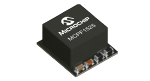Microchip’s MCPF1525 power module is packaged for vertical power delivery.